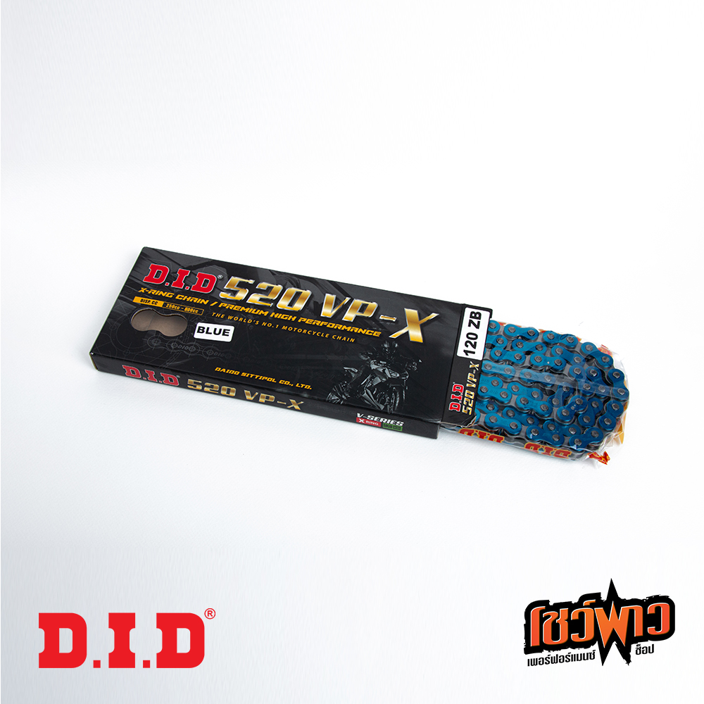 • X-RING  ช่วยเพิ่มประสิทธิภาพการใช้เชื้อเพลิงโดยลดแรงเสียดทาน X-ring ที่ได้รับสิทธิบัตรของ DID ช่วยลดความต้านทานการเลื่อนขึ้น 50% เมื่อเทียบกับโซ่ O-ring ของแท้ ซึ่งช่วยให้วิ่งได้อย่างราบรื่นและเพิ่มประสิทธิภาพการใช้เชื้อเพลิง * ยิ่งตัวเลขน้อย ความเสียดทานยิ่งต่ำ = การสิ้นเปลืองน้ำมันเชื้อเพลิงต่ำและการตอบสนองสูง