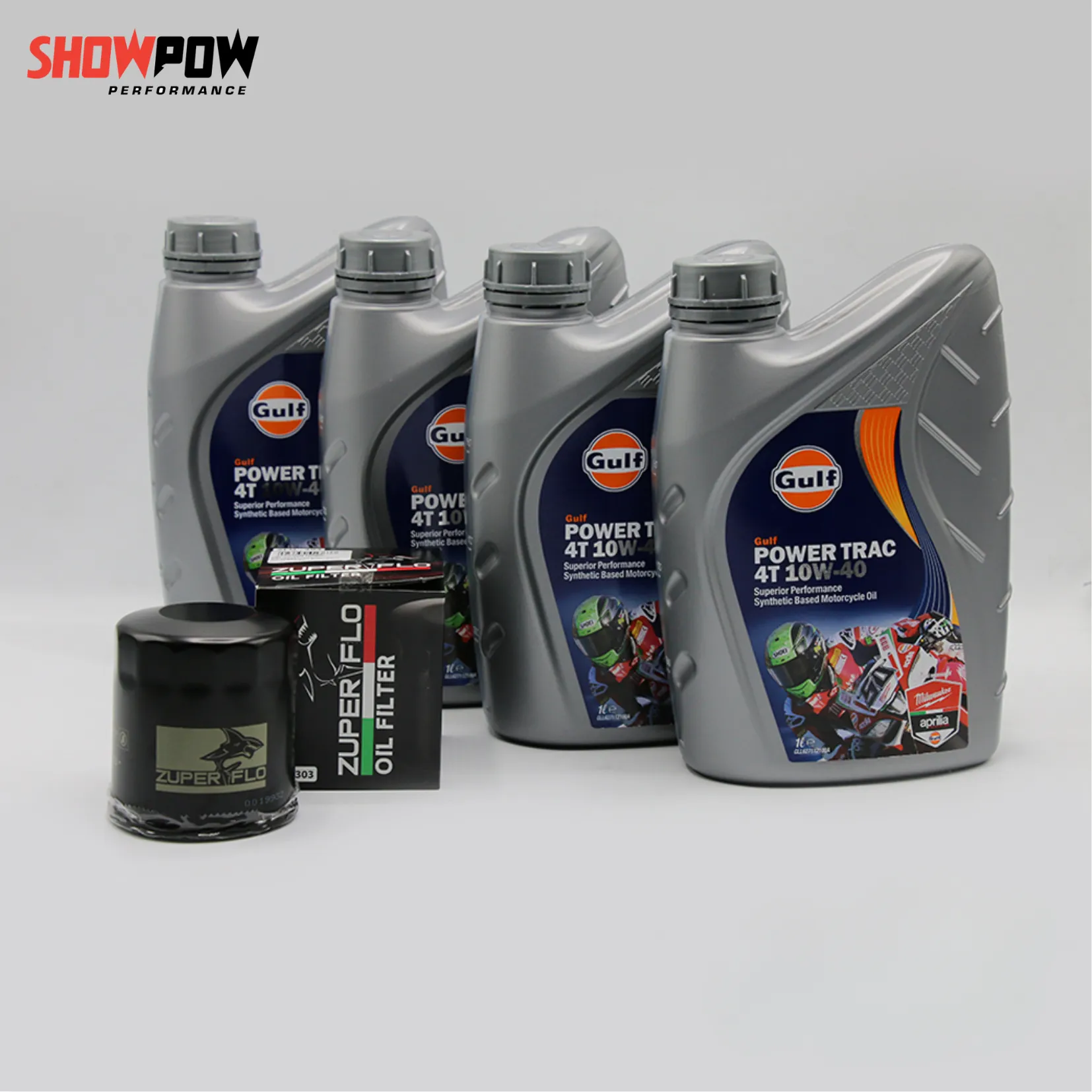 เซ๊ตน้ำมันเครื่อง GULF POWER TRAC 4T 10W40 , 15W50 4 ขวด + กรองน้ำมันเครื่อง