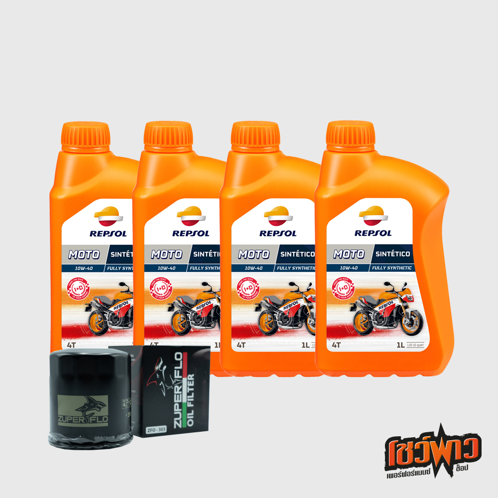 เซ๊ตน้ำมันเครื่อง SINTETICO 4T 10W40 4 ขวด + กรองน้ำมันเครื่อง